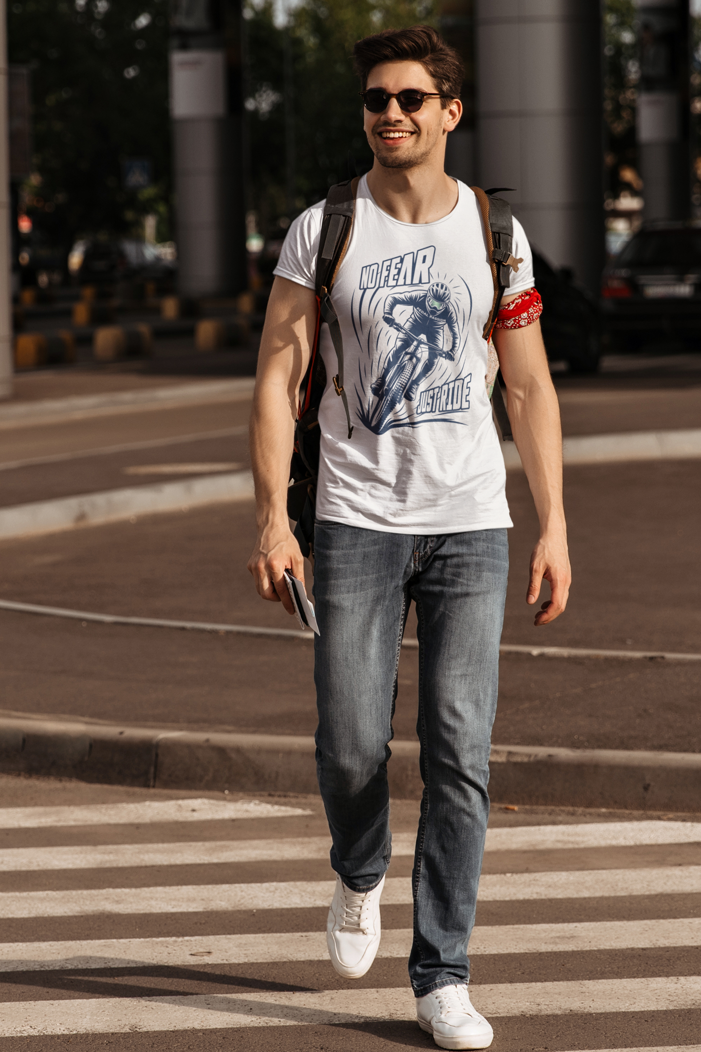 Für alle, die mehr als nur fahren – dieses Shirt zeigt deine Bike-Passion mit Stil. Aus 100% Baumwolle, angenehm zu tragen und hochwertig verarbeitet. Die normale Passform sitzt locker, ohne schlabbrig zu wirken.